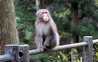この日久しぶりにサルが滝道に現われた |