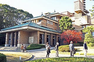 阪神電鉄が甲子園球場の次に造ったリゾートホテルで、帝国ホテルを手がけたライトの弟子が設計した。1930(昭5)年竣工で石材を多用しており、ライト建築のイメージそのもの。
