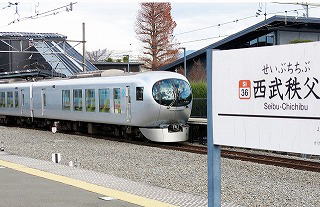 近未来的なスタイルの西武特急で秩父に着いた |