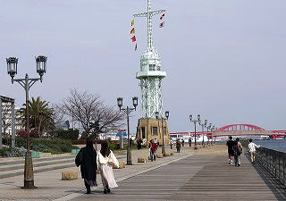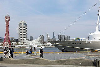 とにかく広い、水辺に出ると気分のいいプロムナードが広がっている。信号所だったという古い灯台を回り込むと海面をはさんでメリケンパークやポートタワーが見えるが、こっちの方が10倍以上も広い。
