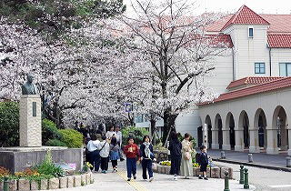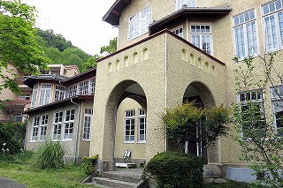 古典的なデザインだが有名建築家とは無縁で、日露戦争直後に工期わずか8ヶ月で建てたという。現在は内部もほぼ昔のままで学院の本館として使用され理事長室や同窓会室等がある。