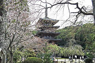 五重塔の前の枝垂れ桜は残念ながら既に散っていた |