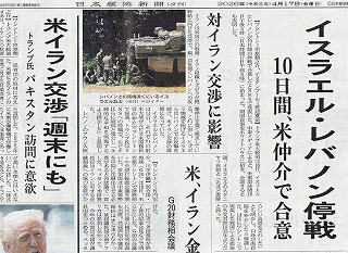 レバノンの南部にはイスラム過激派であるヒズボラの軍事拠点があり、ここからガザを支援している。レバノン政府はこれをコントロールできないため、イスラエルはレバノンというよりヒズボラの壊滅を狙って攻撃している。いずれにしてもこのまま停戦が続いてほしい。 |