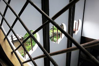 旧遊郭川本楼の吹抜けにあるハート型の明かり窓